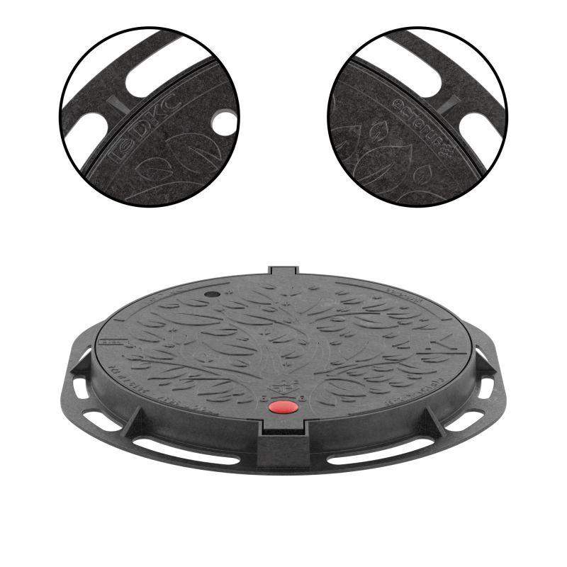 Нагрузка на люк до 1,5 тонн. Применяется для реализации решений по установке колодцев кабельной канализации в зоне зеленых насаждений пешеходных и лесопарковых зон. Данное решение применяется в случае, когда в проекте есть требования, что колодец должен быть укомплектован чугунным люком.