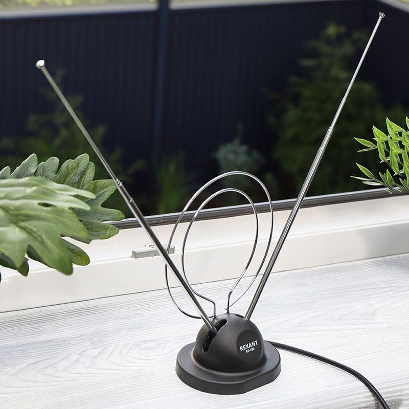 Телескопическая антенна на подставке RX-100 REXANT используется для приема цифрового эфирного вещания на современных телевизорах или комбинированных ресиверах, укомплектованных тюнером стандарта DVB-T2. Предназначена для комнатной установки. Подходит для использования в зоне уверенного приема телесигнала, так как не оснащена встроенным усилителем. Рекомендуемое расстояние до телепередатчика до 10 км. Антенна оснащена регулируемыми телескопическими усами (диполи), которые позволяют настраивать качество приема телевизионного сигнала. Посмотреть зону покрытия цифрового ТВ (DVB-T2) или определить удаленность Базовой Станции (телецентра) от вашего района или населенного пункта можно на официальном сайте ЦТВ: http://цтв.орг/зона-покрытия Тип подключения – ТВ штекер. Масса: 0,2 кг.
