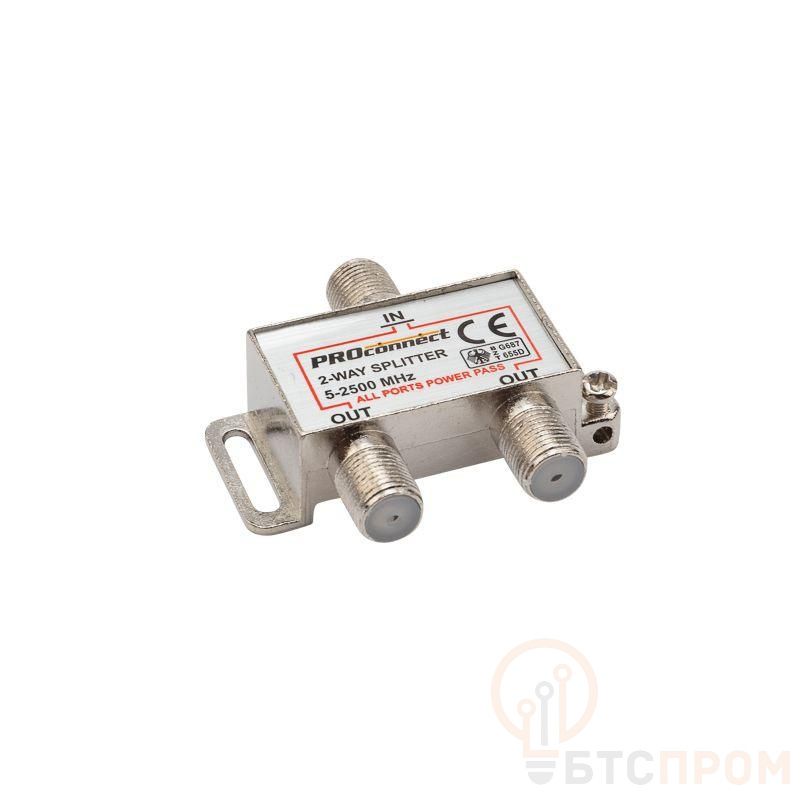 Телевизионный делитель или сплиттер СПУТНИК PROconnect незаменим в любой системе эфирного телевидения, а также в бытовых условиях, когда необходимо подключить к одной антенне несколько телевизоров или ресиверов. Предназначен для деления телевизионного сигнала, идущего от антенны к оборудованию, равномерно на число выходов. Данный ТВ сплиттер рассчитан под F разъём и имеет два выхода, т. е. сигнал, проходящий через сплиттер, делится на две части. Кабель подключается к этому делителю с помощью F-разъемов. Полоса пропускания делителя от 5 до 2500МГц позволяет использовать его в системах спутникового телевидения.