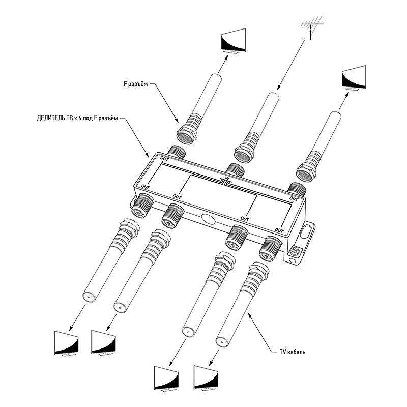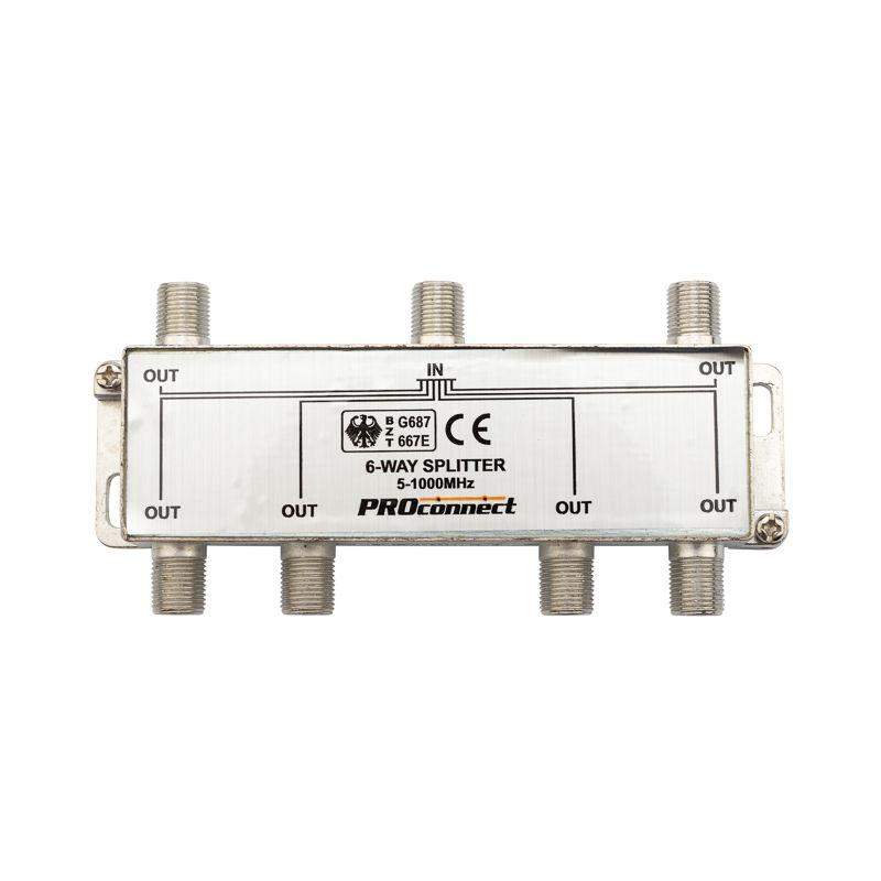 Телевизионный делитель или сплиттер PROconnect незаменим в любой системе эфирного телевидения, а также в бытовых условиях, когда необходимо подключить к одной антенне несколько телевизоров или ресиверов. Предназначен для равномерного деления телевизионного сигнала, идущего от антенны к оборудованию. Данный ТВ сплиттер рассчитан под F разъём и имеет шесть выходов, т. е. сигнал, проходящий через сплиттер, делится на шесть частей. Кабель подключается к этому делителю с помощью F-разъемов. Делитель подходит для сигналов, имеющих диапазон частот 5-1000 МГц, что соответствует эфирному телевидению. Отличается качеством, надежностью и простотой монтажа. Размер 12x5,7x2,3 см.