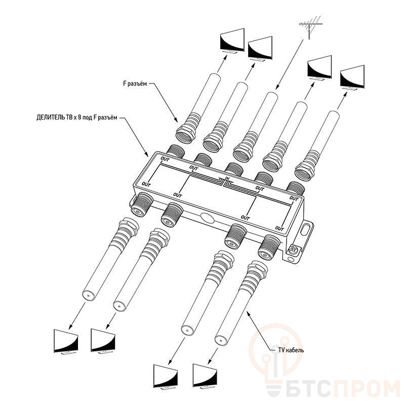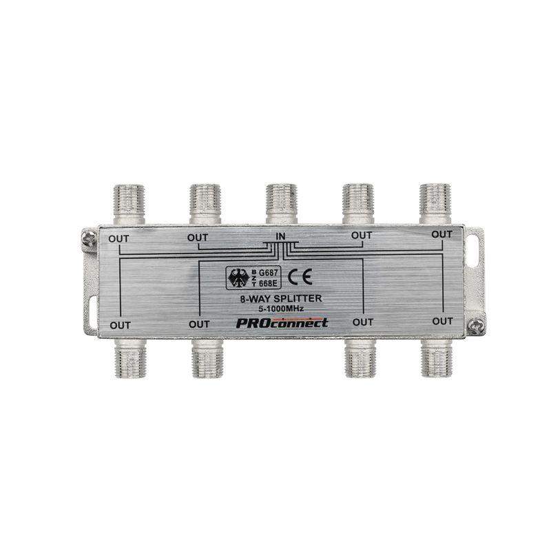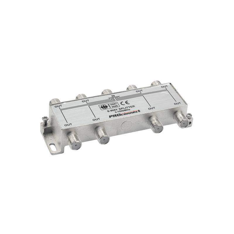 Телевизионный делитель или сплиттер PROconnect незаменим в любой системе эфирного телевидения, а также в бытовых условиях, когда необходимо подключить к одной антенне несколько телевизоров или ресиверов. Предназначен для равномерного деления телевизионного сигнала, идущего от антенны к оборудованию. Данный ТВ сплиттер рассчитан под F разъём и имеет восемь выходов, т. е. сигнал, проходящий через сплиттер, делится на восемь частей. Кабель подключается к этому делителю с помощью F-разъемов. Делитель подходит для сигналов, имеющих диапазон частот 5-1000 МГц, что соответствует эфирному телевидению. Отличается качеством, надежностью и простотой монтажа. Размер: 12x5,7x2,3 см.