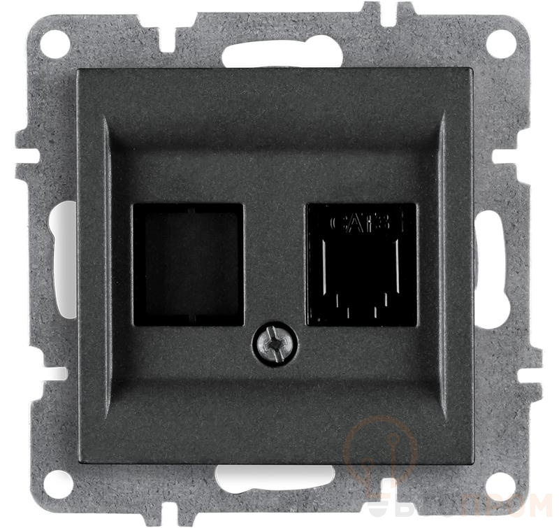 Корпус выполнен в классическом графитовом цвете, что позволяет гармонично интегрировать устройство в современные интерьеры офисов, жилых помещений, гостиниц и объектов коммерческой недвижимости. Механизм отличается простотой и надежностью подключения проводов по схеме T568A/B.