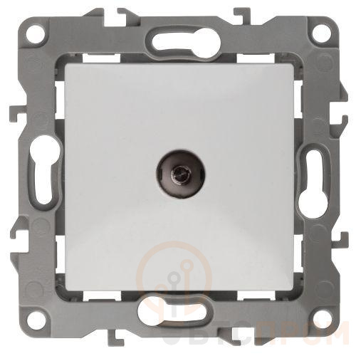 Розетка телевизионная одиночная серии Эра 12 скрытой установки механизм цвет белый 12-3101-01. Сделана из поликарбоната. Монтаж в подрозетник производится и на лапки, и на винты. Рамки приобретаются отдельно. Рамки Эра 12: 1 пост 12-5001-хх, 2 поста 12-5002-хх, 3 поста 12-5003-хх, 4 поста 12-5004-хх, 5 постов 12-5005-хх. Рамки Эра 12 Сатин: 1 пост 12-5101-хх, 2 поста 12-5102-хх, 3 поста 12-5103-хх, 4 поста 12-5104-хх, 5 постов - 12-5105-хх (хх - код цвета: 01-белый, 02-слоновая кость, 03-алюминий, 04-шампань, 05-антрацит, 06-чёрный, 07-ольха(белёный дуб-сатин), 08-вишня, 09-дуб, 10-венге, 11-сосна, 21-жёлтый, 22-оранжевый, 23-красный, 24-охра, 25-бордо, 26-лайм, 27-зелёный, 28-голубой, 29-синий).