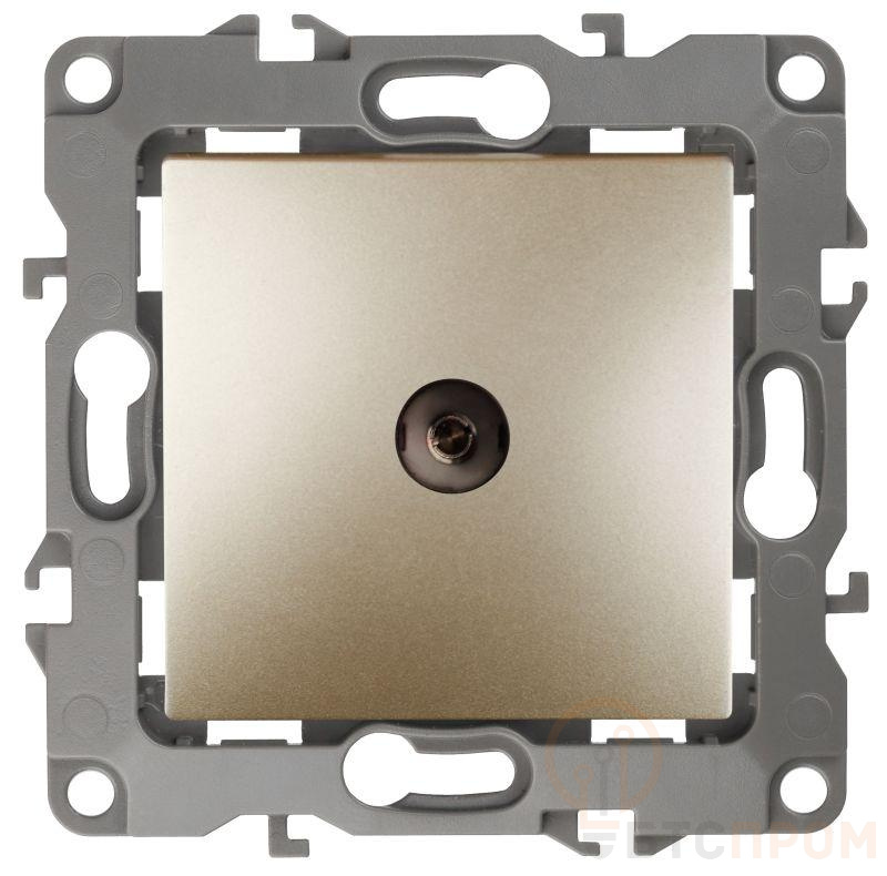 Розетка телевизионная одиночная серии Эра 12 скрытой установки механизм цвет шампань 12-3101-04. Сделана из поликарбоната. Монтаж в подрозетник производится и на лапки, и на винты. Рамки приобретаются отдельно. Рамки Эра 12: 1 пост 12-5001-хх, 2 поста 12-5002-хх, 3 поста 12-5003-хх, 4 поста 12-5004-хх, 5 постов 12-5005-хх. Рамки Эра 12 Сатин: 1 пост 12-5101-хх, 2 поста 12-5102-хх, 3 поста 12-5103-хх, 4 поста 12-5104-хх, 5 постов - 12-5105-хх