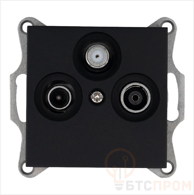 Розетка телевизионная оконечная TV + FM + SAT 3-м Ф9.5мм механизм черн. матов. soft touch Jasmart G6206PB