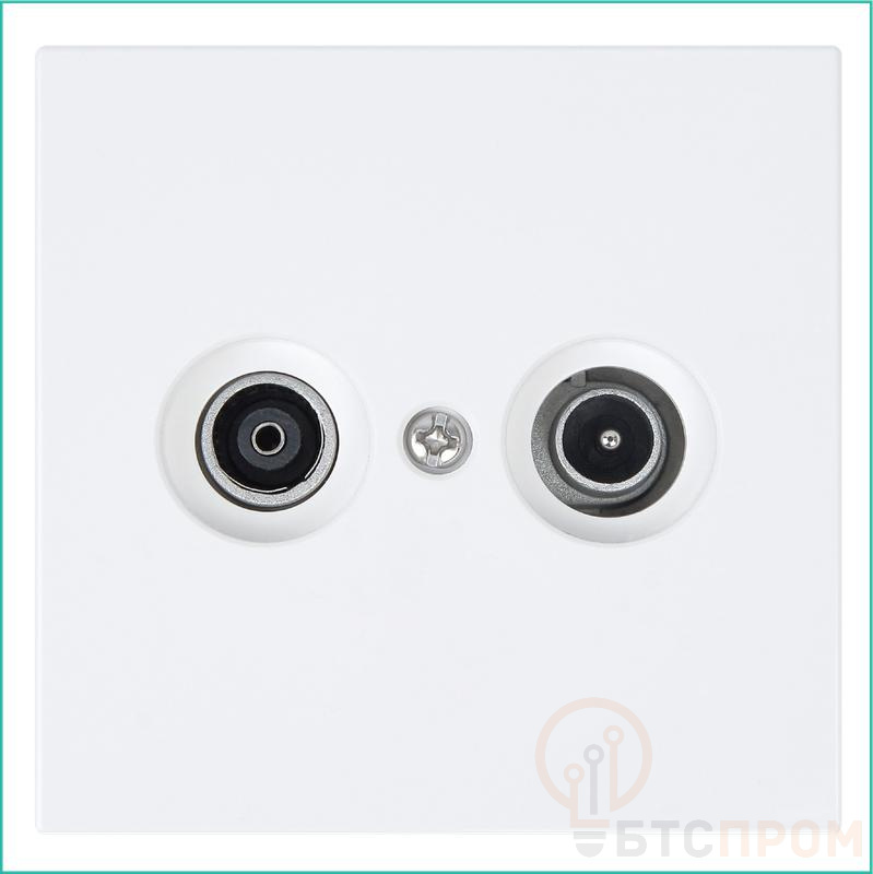 Розетка телевизионная оконечная TV + FM 2-м СП FD Ф9.5мм с накладкой механизм бел. глянцевый Jasmart FD6204W