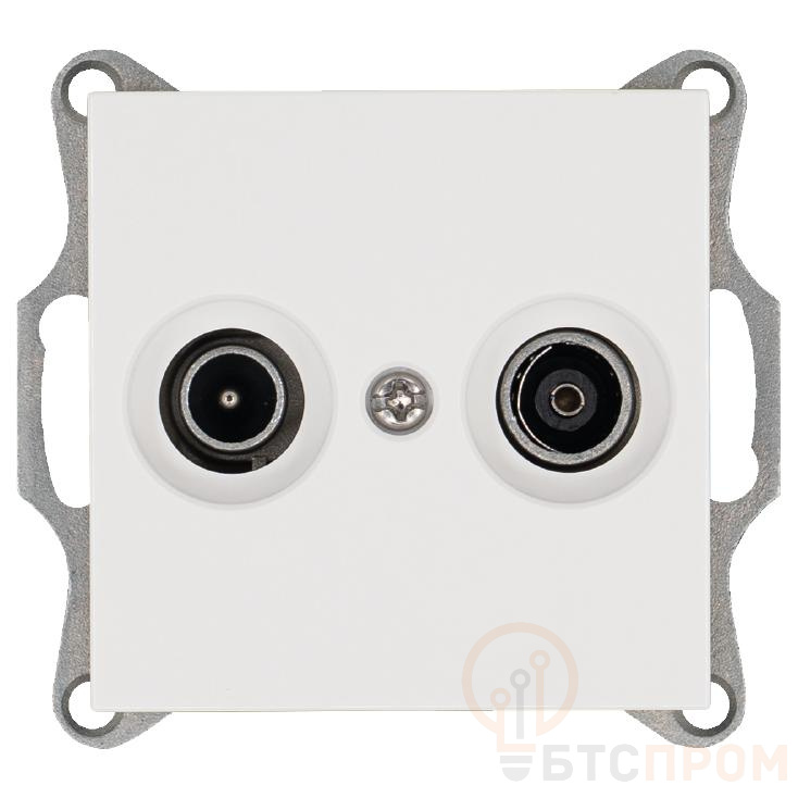 –Розетка телевизионная проходная TV + FM 2-м Ф9.5мм механизм бел. глянцевый Jasmart G6205W