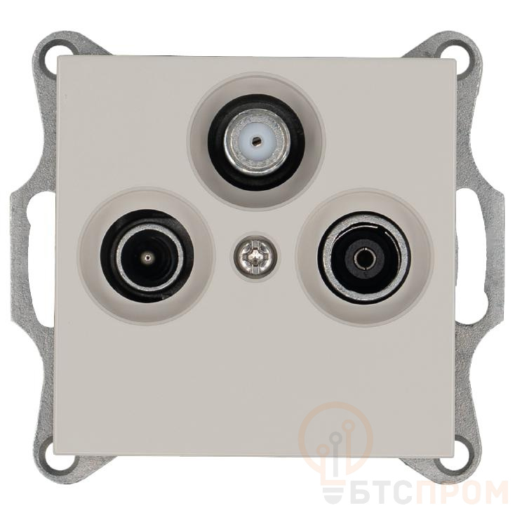 –Розетка телевизионная проходная TV + FM + SAT 3-м Ф9.5мм механизм тауп Jasmart G6207T