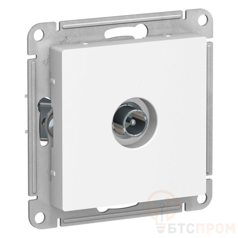 Механизм Systeme Electric (ранее Schneider Electric) серии AtlasDesign в цвете белый розетки TV проходной 4DB предназначен для подключения телевизора к телевизионной сети. - Пластик с ионами серебра в белом цвете обеспечивает антибактериальный эффект. - Лицевые детали из качественного ABS-пластика, устойчивого к царапинам и УФ-излучению. - Проходная розетка используется в начале и середине подключения «в линию». - Усиленные прямые монтажные лапки для лучшей фиксации механизма в монтажной коробке.
