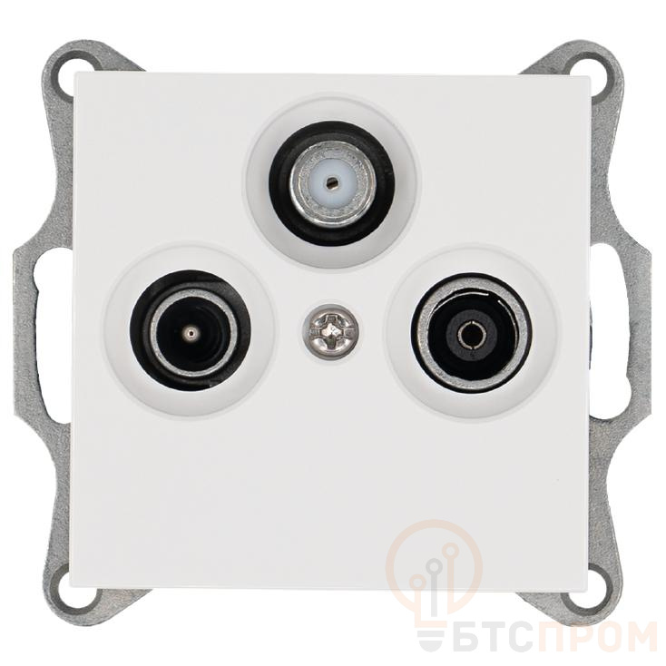 Розетка телевизионная проходная TV + FM + SAT 3-м Ф9.5мм механизм бел. глянцевый Jasmart G6207W фото в каталоге от BTSprom.by