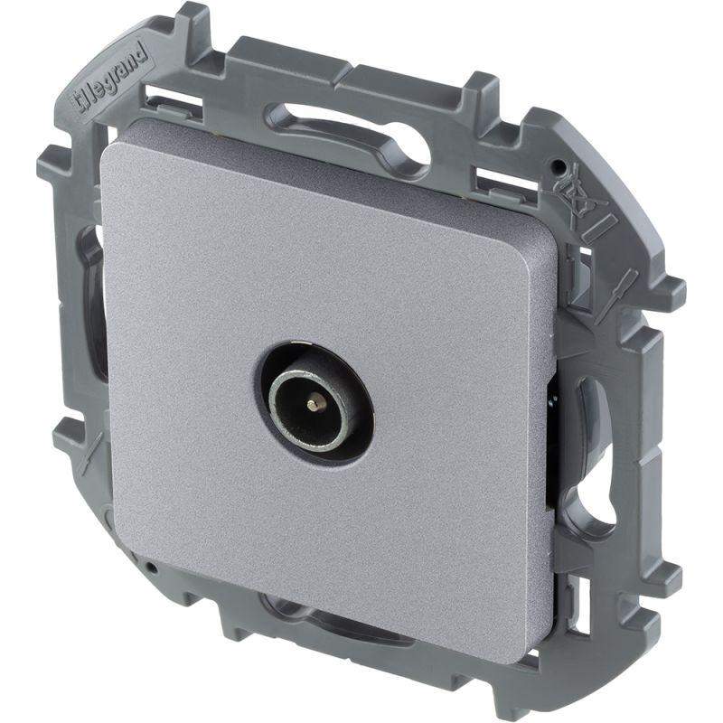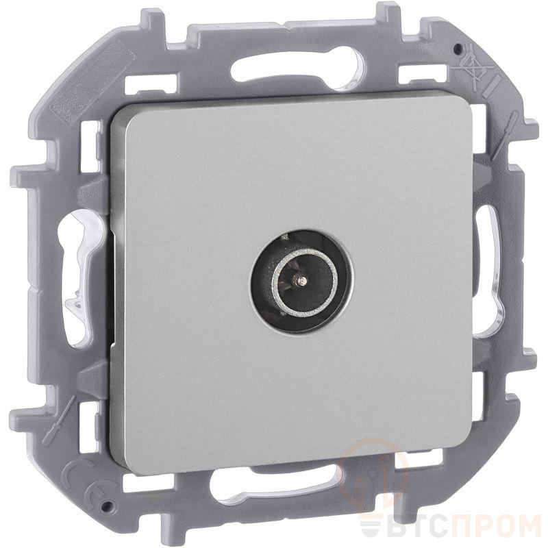 Розетка телевизионная для скрытого монтажа Inspiria, проходная для схемы "шлейф", затухание 14дБ, 4-862МГц, цвет "Алюминий". Предназначена для подключения нескольких ТВ приемников к антенне и используется в схеме "шлейф". Устанавливается в линии между антенной и оконечной розеткой.