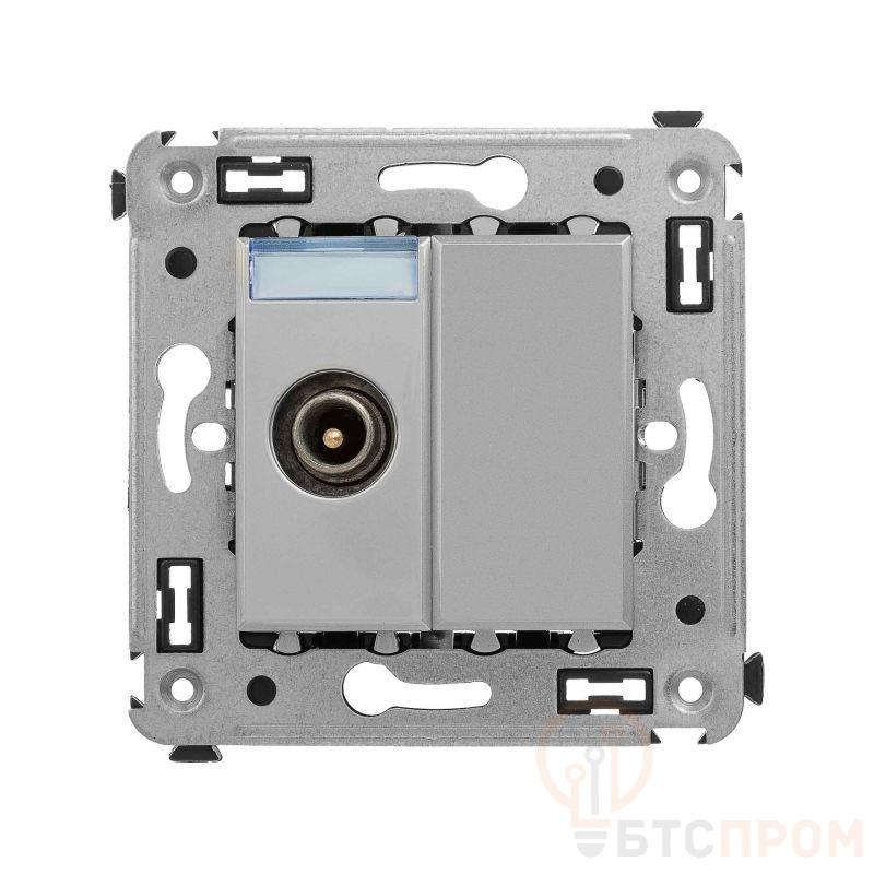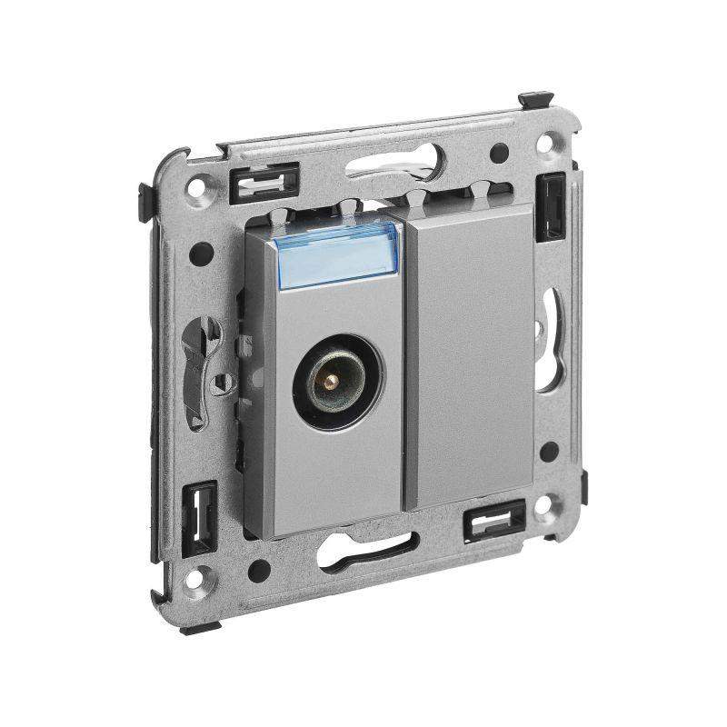 Розетка TV проходная в стену. Назначение: для монтажа в подрозеточные коробки глубиной не менее 45 мм (код 59301); подключение телевизионного кабеля к телевизору. Характеристики: винтовые зажимы; диапазон рабочих частот 4–2400 МГц; затухание <1 дБ. Кол-во модулей: 2. Цвет: "Закаленная сталь" Производитель оставляет за собой право вносить во внешний вид изделия изменения, которые не влияют на его функционал, безопасность и надежность.