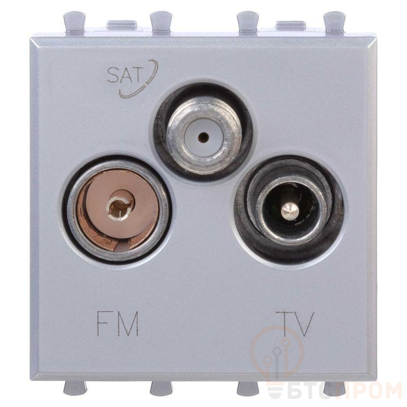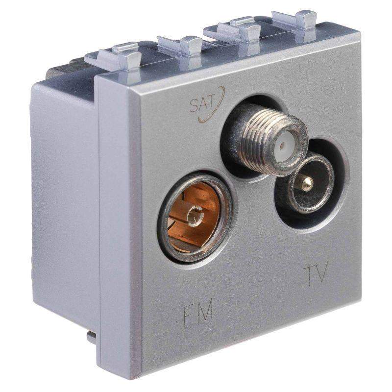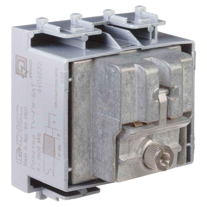 Розетка TV-FM-SAT модульная. Назначение: для монтажа в систему кабельных коробов "In-liner Front" и систему организации рабочих мест "Sotto" (алюминиевые кабель-каналы, колонны, башенки и лючки) при помощи рамок-суппортов и каркасов "Avanti" (код 4400912 и т.д.); подключение теле- и радиокабеля. Характеристики: винтовые зажимы; диапазон рабочих частот 4–2400 МГц; затухание