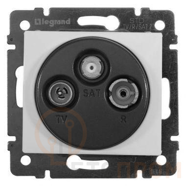 Розетка TV-FM-SAT тип звезда VALENA. Предназначена для организации индивидуального подключения телевизионных, FM-радио и спутниковых (SAT) сигналов по схеме "звезда". Каждая розетка подключается напрямую к сплиттеру или мультисвитчеру, обеспечивая независимый высококачественный сигнал без потерь.