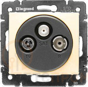 Розетка TV-FM-SAT тип звезда VALENA. Предназначена для организации индивидуального подключения телевизионных, FM-радио и спутниковых (SAT) сигналов по схеме "звезда". Каждая розетка подключается напрямую к сплиттеру или мультисвитчеру, обеспечивая независимый высококачественный сигнал без потерь.