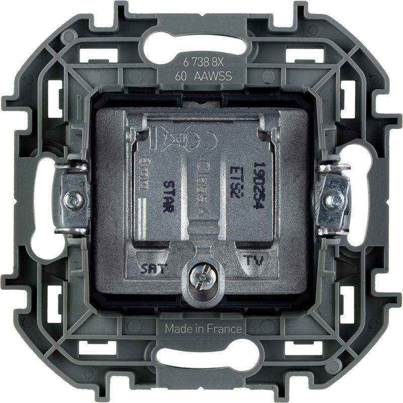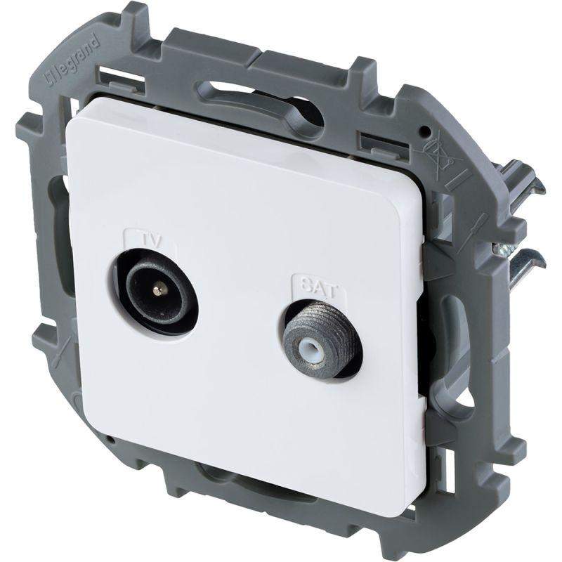 Розетка TV-SAT двухкабельная для скрытого монтажа Inspiria, для схемы "звезда", затухание 1,5дБ, 4-2400МГц / 1,5дБ 4-2400МГц, поддержка обратного питания для активных антенн до 500мА, цвет "Белый". Используется для подключения ТВ приемника к системе эфирного вещания, а также для подключения ресивера к спутниковой антенне.