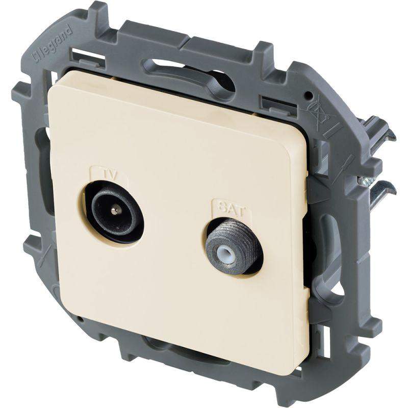 Розетка TV-SAT двухкабельная для скрытого монтажа Inspiria, для схемы "звезда", затухание 1,5дБ, 4-2400МГц / 1,5дБ 4-2400МГц, поддержка обратного питания для активных антенн до 500мА, цвет "Слоновая кость". Используется для подключения ТВ приемника к системе эфирного вещания, а также для подключения ресивера к спутниковой антенне.