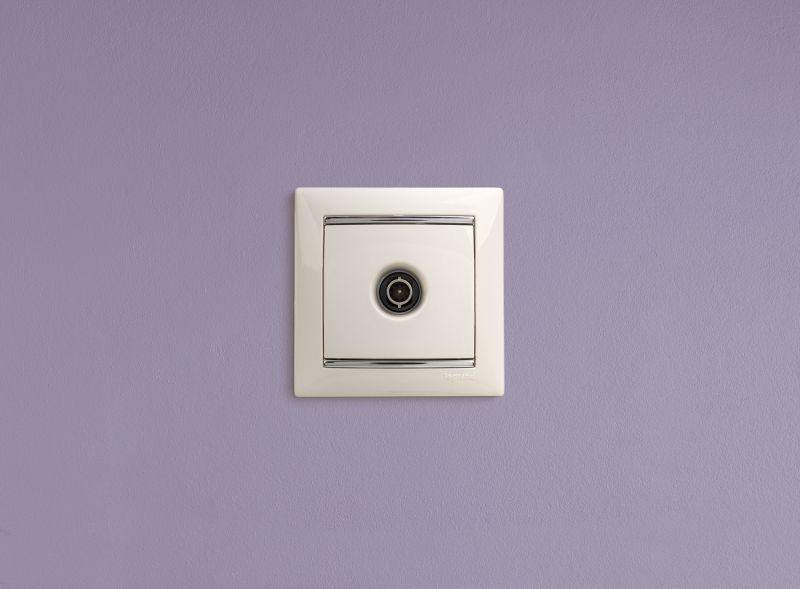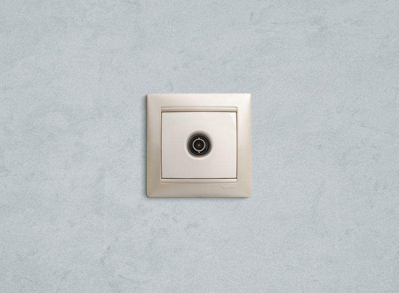 TV-розетка тип "звезда" VALENA. Используется для подключения одного ТВ приемника к антенне, а также для организации телевизионной сети по схеме "звезда", когда к каждому телевизору прокладывается своя линия от источника сигнала.