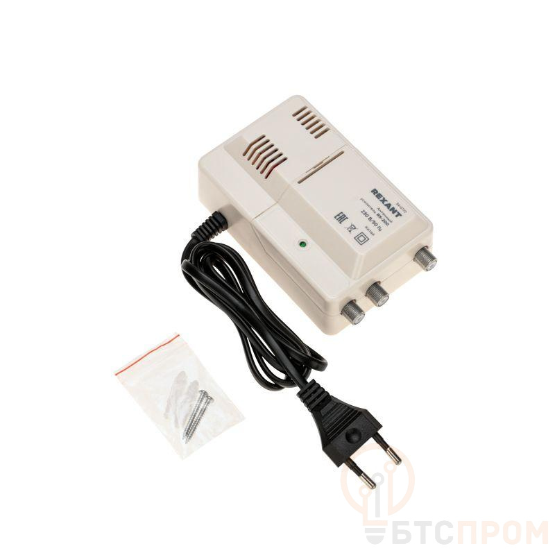Антенный усилитель RX-200 предназначен для усиления цифрового эфирного сигнала в стандарте DVB-T2 в диапазоне частот 47…862 МГц. Позволяет развести ТВ сигнал, принимаемый от одной антенны, на 2 выхода, к которым можно подключить два DVB-T2 приемника/два телевизора. При дополнительном применении делителей ТВ сигнала можно расширить возможность подключения до 10 устройств Корпус антенного усилителя выполнен из ударопрочного АБС-пластика.