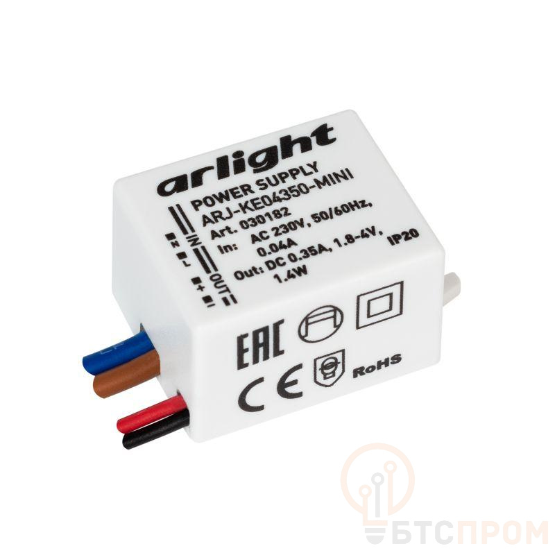 Источник тока с гальванической развязкой для светильников и мощных светодиодов. Входное напряжение 220-240 VAC. Выходные параметры: 1.8-4 В, 350 mА, 1.4 Вт. Встроенный PFC >0.4. Негерметичный пластиковый корпус IP 20. Габаритные размеры длина 34 мм, ширина 22.8 мм, высота 17 мм. Гарантийный срок 5 лет.