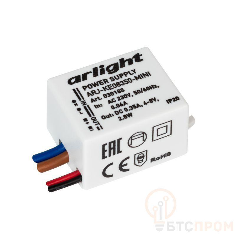 Источник тока с гальванической развязкой для светильников и мощных светодиодов. Входное напряжение 220-240 VAC. Выходные параметры: 4-8 В, 350 mА, 2.8 Вт. Встроенный PFC >0.4. Негерметичный алюминиевый корпус IP 20. Габаритные размеры длина 34 мм, ширина 22.8 мм, высота 17 мм. Гарантийный срок 5 лет.