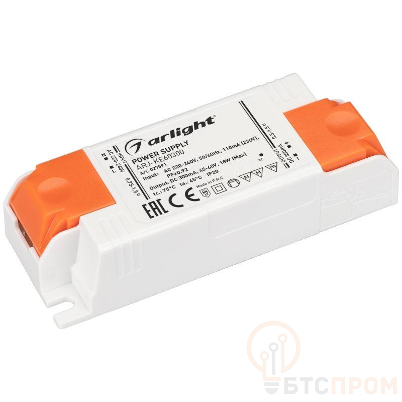 Источник тока с гальванической развязкой для светильников и мощных светодиодов. Входное напряжение 220-240 VAC. Выходные параметры: 45-60 В, 300 mА, 18 Вт. Встроенный PFC >0.92. Негерметичный пластиковый корпус IP 20. Габаритные размеры длина 96 мм, ширина 36 мм, высота 23 мм. Гарантийный срок 5 лет.