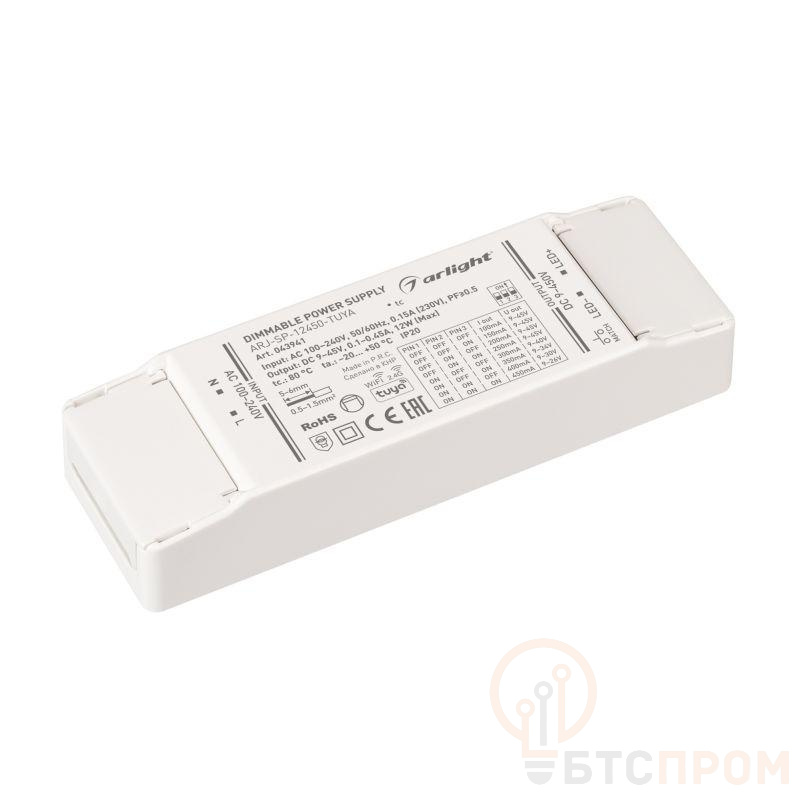 Блок питания ARJ-SP-12450-TUYA (12Вт 9-45В 0.1-0.45А WiFi 2.4G) IP20 пластик Arlight 043941 фото в каталоге от BTSprom.by