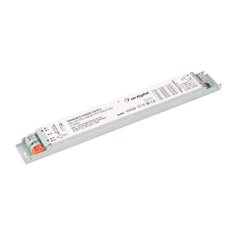 Диммируемый источник тока без гальванической развязки с регулировкой для светильников и мощных светодиодов. Входное напряжение 220-240 VAC. Предназначены для питания групп светильников и светодиодов от одного источника тока. Выходные параметры: 80-300В (500мА), 80-250В (600мА), 80-214В (700мА), 80-187В (800мА), 80-166В (900мА), 80-150В (1000мА), максимальная мощность 150 Вт. Встроенный PFC >0,96. Негерметичный металлический корпус IP 20. Габаритные размеры длина 284 мм, ширина 30 мм, высота 20 мм. Гарантийный срок 5 лет.