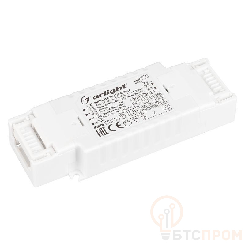 Диммируемый токовый блок питания с управлением DALI 2.0 и функцией Push Dim с гальванической развязкой. Входное напряжение 220-240VAC. Выходные параметры: 3-45В (200/250/300/350/400/450мA), 3-40В (500мA), 3-36В (550мA), максимальная мощность 20Вт. Встроенный PFC >0,94. Габаритные размеры длина 116 мм (78 мм без бок. крышек), ширина 40.5 мм, высота 22 мм. Гарантийный срок 5 лет.