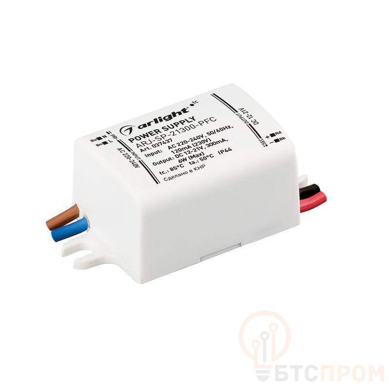 Источник тока с гальванической развязкой для светильников и мощных светодиодов. Входное напряжение 220-240 VAC. Выходные параметры: 12-21 В, 300 mА, 6 Вт. Встроенный PFC >0.8. Негерметичный пластиковый корпус IP 44. Габаритные размеры длина 55 мм, ширина 27 мм, высота 21 мм. Гарантийный срок 5 лет.