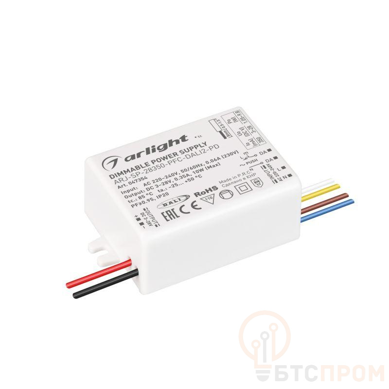 Диммируемый токовый блок питания с управлением DALI 2.0 и функцией Push Dim с гальванической развязкой. Входное напряжение 220-240VAC. Выходные параметры: 3-28В (350мA), максимальная мощность 10Вт. Встроенный PFC >0,95. Габаритные размеры: длина 65 мм.(53 мм. без креплений), ширина 40 мм., высота 23 мм. Гарантийный срок 5 лет.