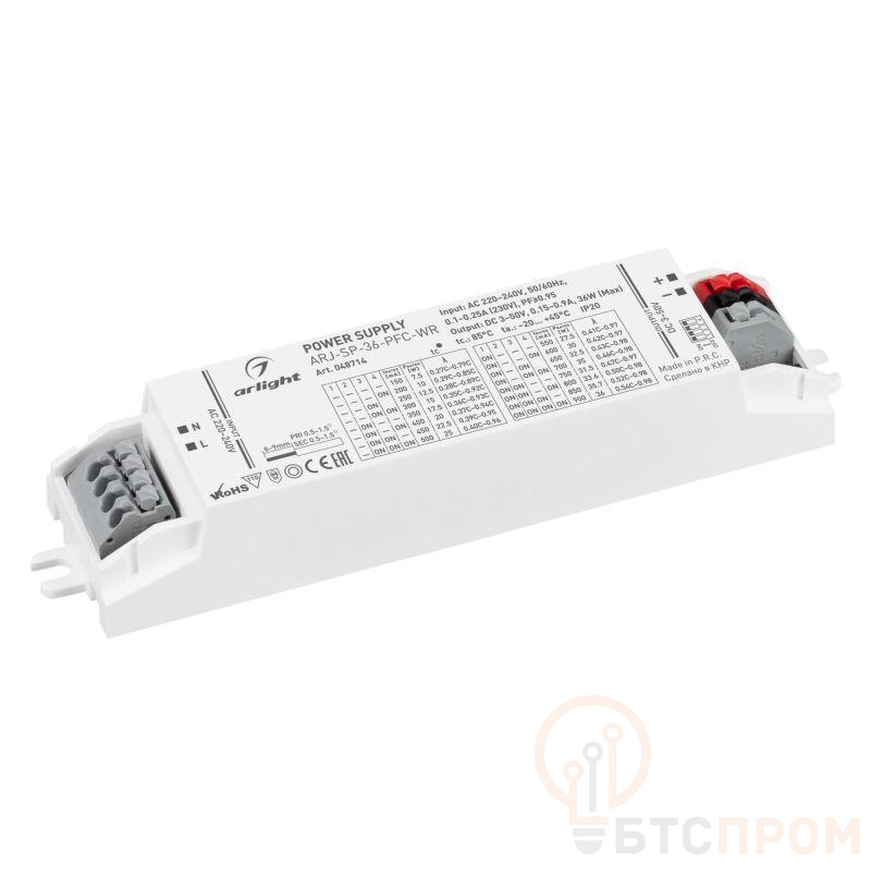 Регулируемый источник тока с гальванической развязкой для светильников и мощных светодиодов. Широкий диапазон значения выходного тока и напряжения. Входное напряжение 220-240 VAC. Выходные параметры: 3-50 В, 150-900 мА, 36 Вт. Встроенный PFC 0.8-0.95. Негерметичный пластиковый корпус IP 20. Габаритные размеры длина 128 мм, ширина 30 мм, высота 21 мм. Выбор значения тока осуществляется дип-переключателем. Гарантийный срок 5 лет. Боковые крышки в комплект не входят, доступны под заказ за дополнительную плату.