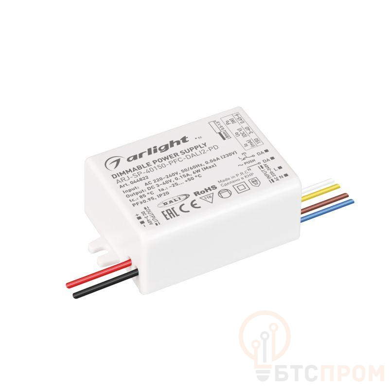 Диммируемый токовый блок питания с управлением DALI 2.0 и функцией Push Dim с гальванической развязкой. Входное напряжение 220-240VAC. Выходные параметры: 3-40В (150мA), максимальная мощность 6Вт. Встроенный PFC >0,95. Габаритные размеры: длина 65 мм. (53 мм. без креплений)., ширина 40 мм., высота 23 мм. Гарантийный срок 5 лет.
