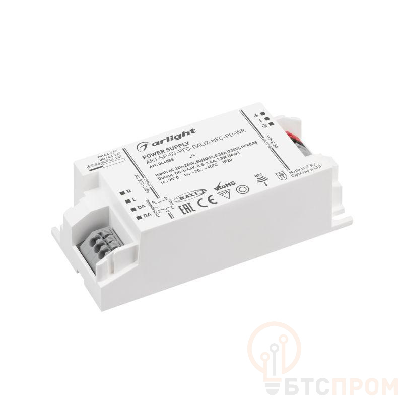 Диммируемый токовый блок питания с управлением DALI 2.0 и функцией Push Dim с гальванической развязкой. Питание 220-240AC. Выход 3-44В - (500-1200 мА), 3-42В - (1250мА), 3-40В - (1300мА), 3-39В - (1350мА), 3-38В - (1400мА), 53Вт. PF >0,95. Выбор значения выходного тока осуществляется с помощью NFC технологии. Настройки DALI устанавливаются стандартным способом. Размеры 97x43x30 мм. Гарантия 5 лет. Для корректной работы необходим RFID считыватель NFC. Подробная инструкция и приложение доступны по адресу https://arlight.ru/support/apps/