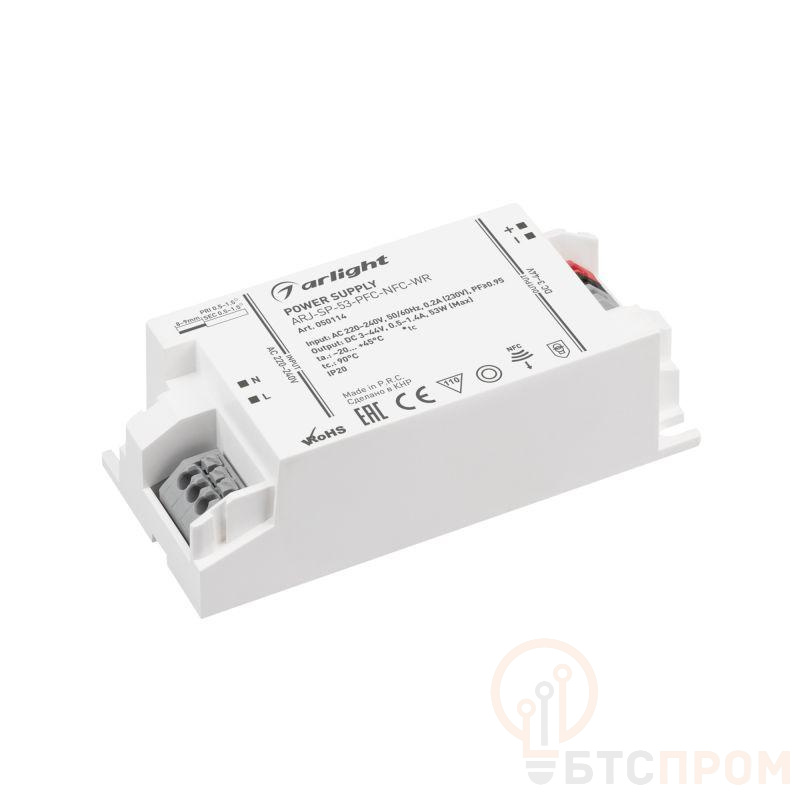 Мультитоковый блок питания с гальванической развязкой. Входное напряжение 220-240 VAC. Выходные параметры: 3-44В (500-1200мA), 3-42В (1250мА), 3-40В (1300мА), 3-39В (1350мА), 3-38.5В (1400мА); 53Вт, PF >0,95. Негерметичный пластиковый корпус IP 20.Выбор значения выходного тока осуществляется с помощью NFC технологии. Габаритные размеры длина 97 мм, ширина 43 мм, высота 30 мм. Гарантийный срок 5 лет. Для корректной работы необходим RFID считыватель NFC. Подробная инструкция и приложение доступны по адресу https://arlight.ru/support/apps/
