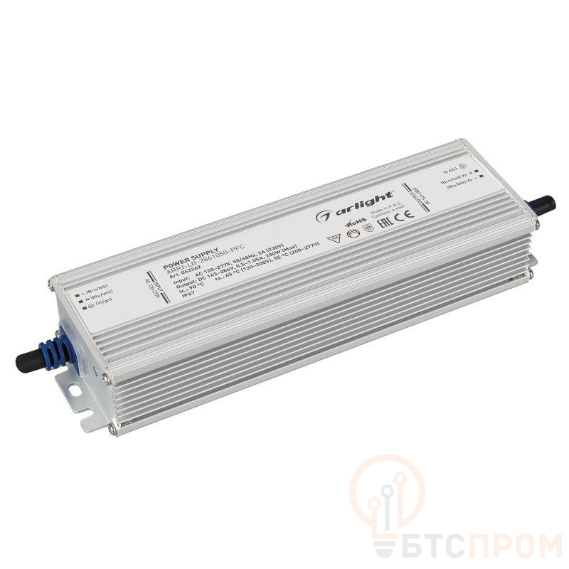 Регулируемый источник тока с гальванической развязкой для светильников и мощных светодиодов. Входное напряжение 120-277 VAC. Выходные параметры: 143-286 В, 500-1050mА (регулировка встроенным потенциометром, установка по умолчанию 700мА), 200 Вт. Встроенный PFC >0.95. Герметичный металлический корпус IP 67. Габаритные размеры длина 199 мм, ширина 63 мм, высота 37 мм. Гарантийный срок 5 лет.