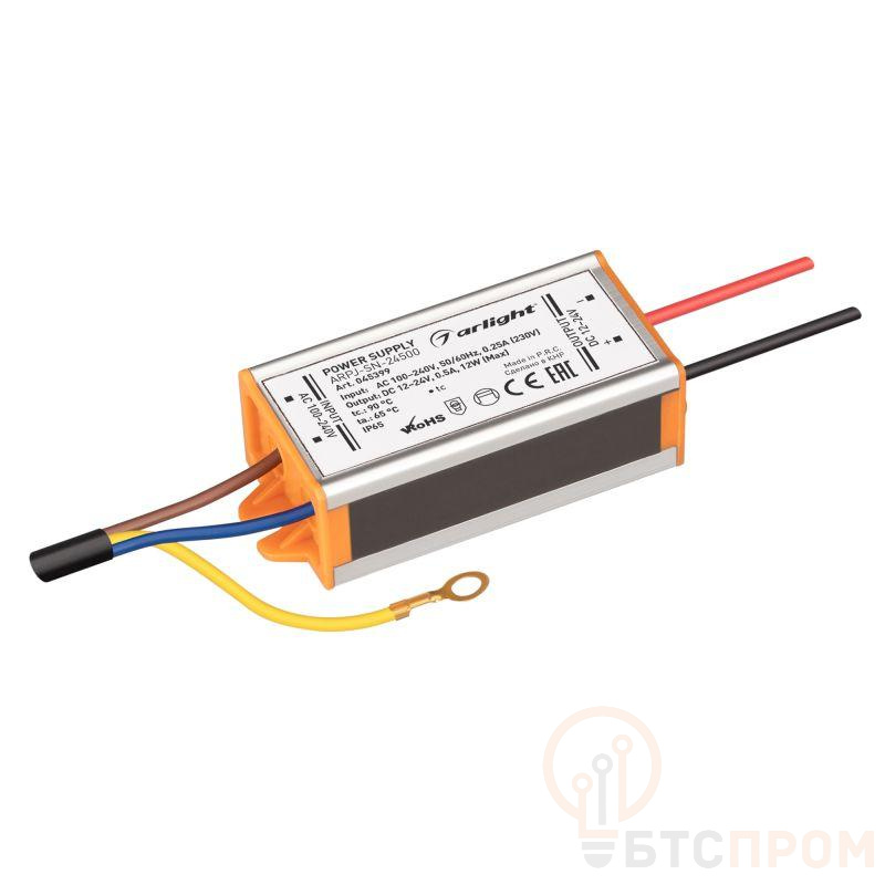 Источник тока с гальванической развязкой для уличных светильников и мощных светодиодов. Входное напряжение 100-240 VAC. Выходные параметры: 12-24 В, 500 mА, 12 Вт. PF >0.5. Герметичный металлический корпус IP 65. Габаритные размеры длина 68 мм, ширина 30 мм, высота 20 мм. Гарантийный срок 3 года.