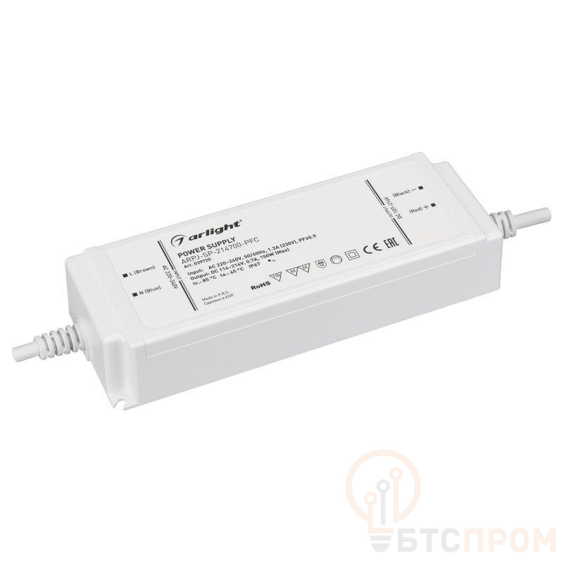 Источник тока с гальванической развязкой для светильников и мощных светодиодов. Входное напряжение 220-240 VAC. Выходные параметры: 114-214 В, 700 mА, 150 Вт. Встроенный PFC >0.9. Герметичный пластиковый корпус IP 67. Габаритные размеры длина 191 мм, ширина 68 мм, высота 37.2 мм. Гарантийный срок 5 лет.