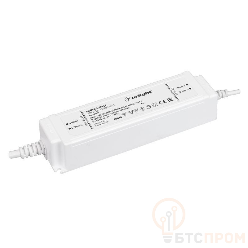 Источник тока с гальванической развязкой для светильников и мощных светодиодов. Входное напряжение 220-240 VAC. Выходные параметры: 21-42 В, 1400 mА, 60 Вт. Встроенный PFC >0.9. Герметичный пластиковый корпус IP 67. Габаритные размеры длина 166 мм, ширина 43 мм, высота 33 мм. Гарантийный срок 5 лет.