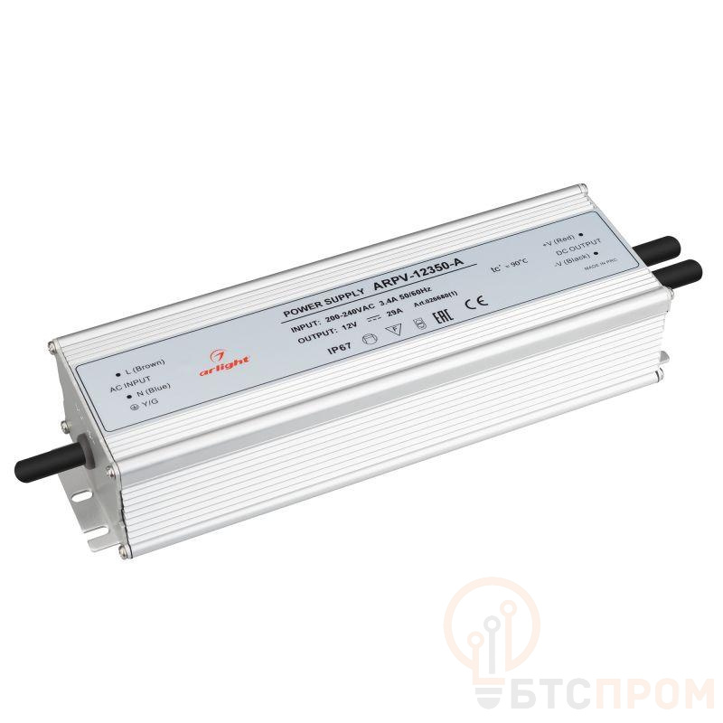 Источник напряжения с гальванической развязкой для светодиодных изделий. Входное напряжение 200-240 VAC. Выходные параметры: 12 В, 29 А, 350 Вт. Встроенный PFC >0,5. Герметичный алюминиевый корпус IP 67. Рабочая температура -30…+50C?. Габаритные размеры длина 238 мм, ширина 74 мм, высота 46 мм. Гарантийный срок 3 года. Не допускается использовать источник питания совместно с диммерами (регуляторами освещения), как по входу, так и по выходу источника питания!