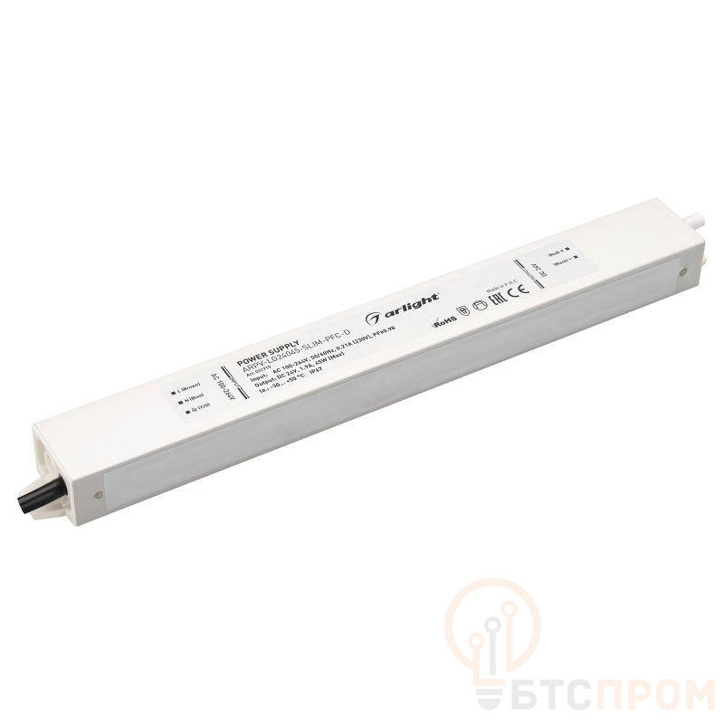 Источник напряжения с гальванической развязкой для светодиодных изделий. Входное напряжение 200-240 VAC. Выходные параметры: 24 В, 1.9 А, 45 Вт. Встроенный PFC >0.98. Герметичный алюминиевый корпус IP 67. Рабочая температура -30…+50C?. Габаритные размеры длина 263 мм, ширина 30 мм, высота 20 мм. Гарантийный срок 5 лет.