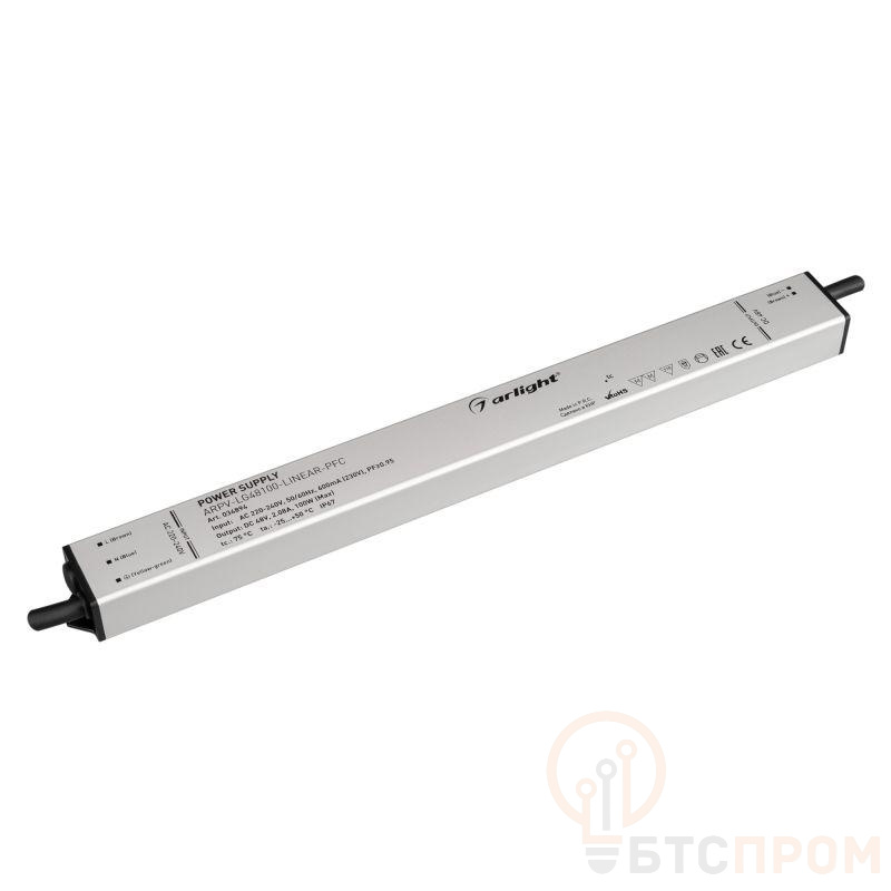 Источник напряжения с гальванической развязкой для светодиодных изделий. Входное напряжение 220-240 VAC. Выходные параметры: 48 В, 2.08 А, 100 Вт. Встроенный PFC >0.95. Тонкий металлический корпус IP67. Вход: 220-240VAC. Выход: 48VDC. Размер 320х30х21 mm.. Совместимость со стандартом EMC. Гарантия 5 лет. Допускается использование только внутри помещений.