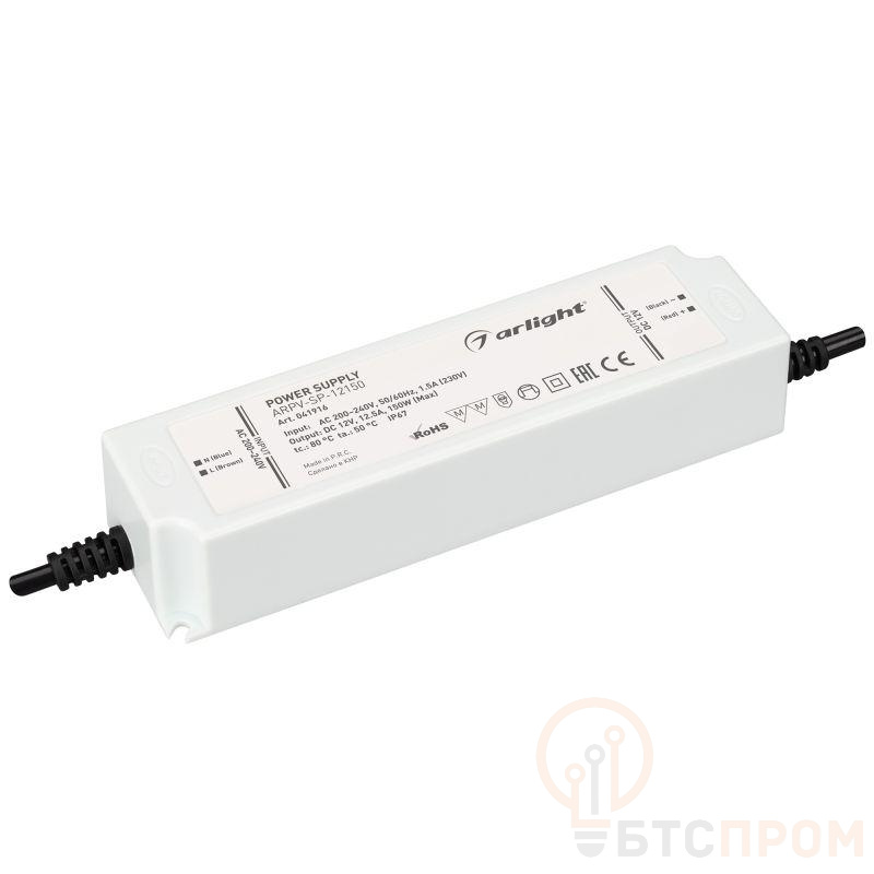 Источник напряжения с гальванической развязкой для светодиодных изделий. Входное напряжение 200-240 VAC. Выходные параметры: 12 В, 12,5 А, 150Вт. Встроенный PFC >0.5. Герметичный пластиковый корпус IP 67. Рабочая температура -30…+70C?. Габаритные размеры длина 190 мм, ширина 52 мм, высота 37 мм. Гарантийный срок 5 лет. Режим CV+CC - при превышении выходной мощности снижается напряжение, переходит в режим источника тока.