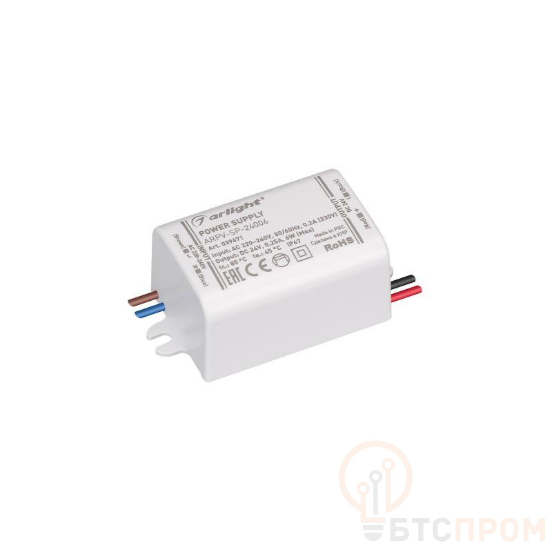 Источник напряжения с гальванической развязкой для светодиодных изделий. Входное напряжение 220-240 VAC. Выходные параметры: 24 В, 0.25 А, 6 Вт, PF >0.5. Герметичный пластиковый корпус IP 67. Рабочая температура -20…+45C?. Габаритные размеры длина 55 мм, ширина 29.5 мм, высота 22 мм. Гарантийный срок 5 лет.