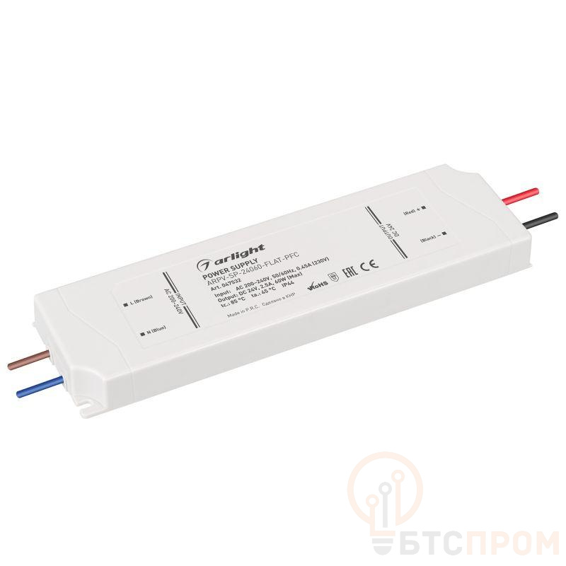 Источник напряжения с гальванической развязкой для светодиодных изделий. Входное напряжение 200-240 VAC. Выходные параметры: 24 В, 2.5 А, 60 Вт. Встроенный PFC >0.92. Сверхтонкий герметичный пластиковый корпус IP44. Габаритные размеры длина 194.5 мм, ширина 55 мм, высота 17 мм. Гарантийный срок 5 лет.