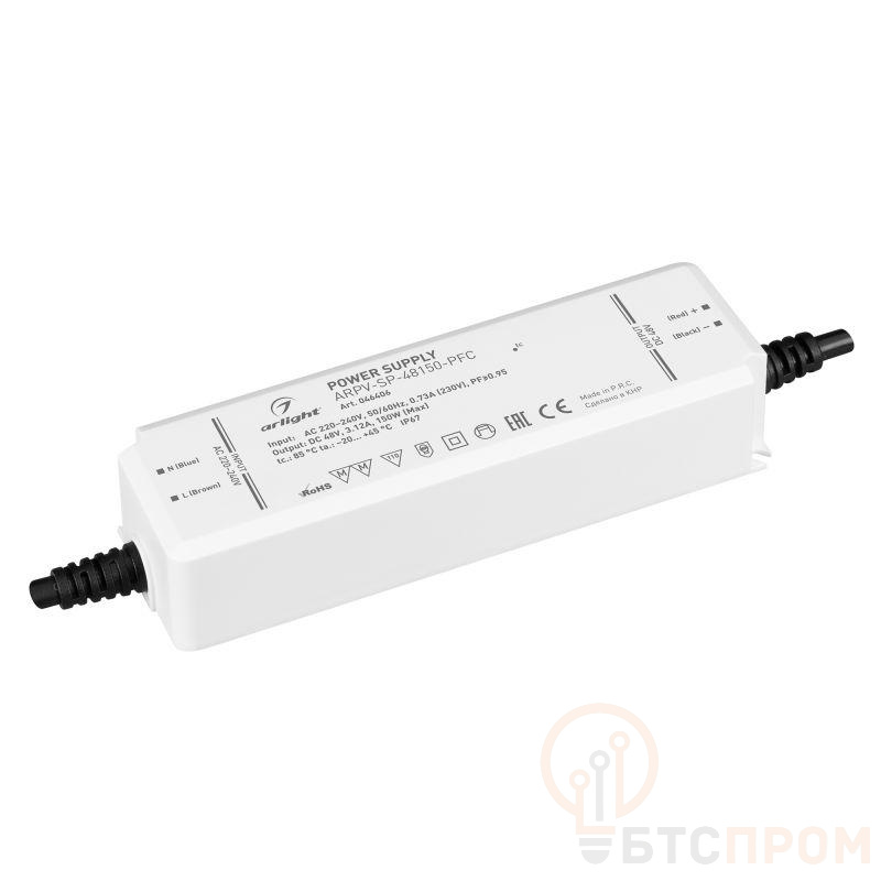 Источник напряжения с гальванической развязкой для светодиодных изделий. Входное напряжение 220-240 VAC. Выходные параметры: 48 В, 3,12 А, 150Вт. Встроенный PFC >0.95. Герметичный пластиковый корпус IP 67. Рабочая температура -20…+45C?. Габаритные размеры длина 156 мм, ширина 48 мм, высота 33 мм. Гарантийный срок 5 лет.