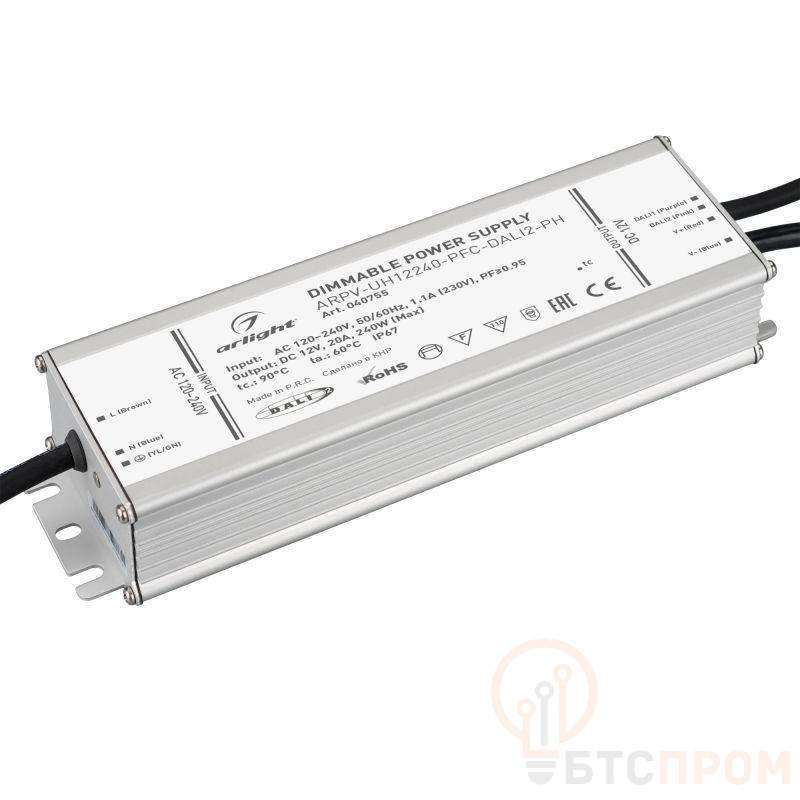 Диммируемый источник напряжения по протоколу DALI2.0 с гальванической развязкой для светодиодных изделий. Входное напряжение 120-240 VAC. Выходные параметры: 12 В, 20 А, 240 Вт. Встроенный PFC >0.95. Герметичный алюминиевый корпус IP 67. Рабочая температура -40…+70C?. Габаритные размеры длина 188 мм, ширина 67.5 мм, высота 38.5 мм. Гарантийный срок 7 лет. Режим CV+CC - при превышении выходной мощности снижается напряжение, переходит в режим источника тока.