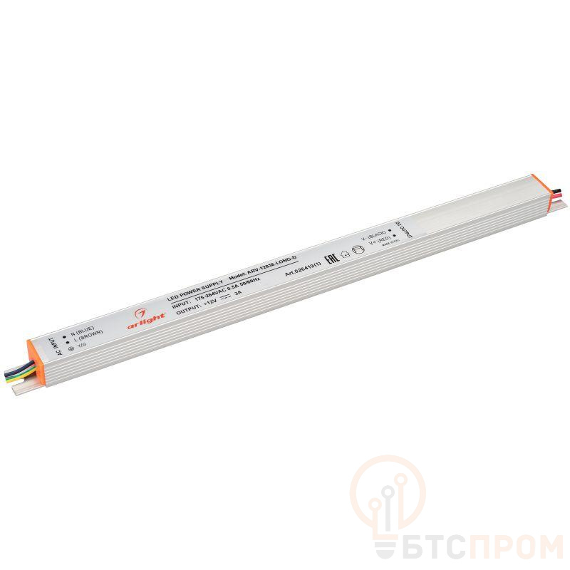 Источник напряжения с гальванической развязкой для светодиодных изделий. Входное напряжение 200-240 VAC. Выходные параметры: 12 В, 3 А, 36 Вт. Встроенный PFC >0,5. Негерметичный алюминиевый корпус IP 20. Габаритные размеры длина 306 мм, ширина 18 мм, высота 15 мм. Гарантийный срок 2 года.