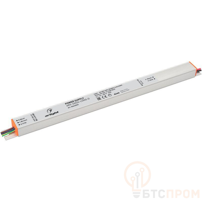 Источник напряжения с гальванической развязкой для светодиодных изделий. Входное напряжение 200-240 VAC. Выходные параметры: 24 В, 1 А, 24 Вт. Встроенный PFC >0,5. Негерметичный алюминиевый корпус IP 20. Габаритные размеры длина 288 мм, ширина 18 мм, высота 15 мм. Предназначен для лайтбоксов. Гарантийный срок 3 года.