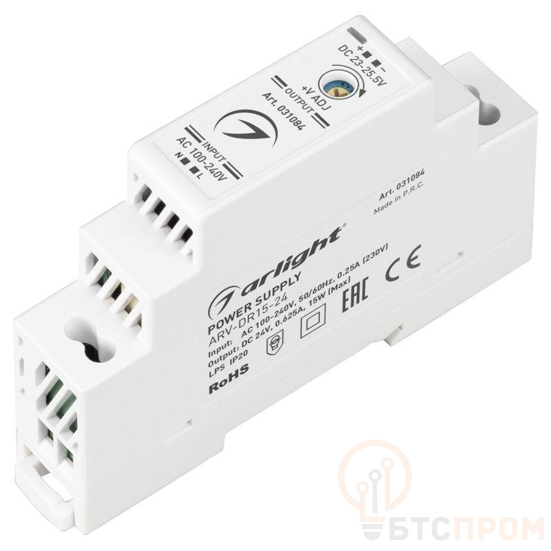 Источник напряжения с гальванической развязкой для светодиодных изделий. Входное напряжение 100-240 VAC. Выходные параметры: 24 В, 0.625 А, 15 Вт. Негерметичный пластиковый корпус IP 20 для установки на DIN-рейку. Габаритные размеры длина 58 мм, ширина 17.5 мм, высота 90 мм. Гарантийный срок 3 года. При нагрузке менее 10% после отключения от сети, повторное включение блока питания может быть с задержкой (до 30с)